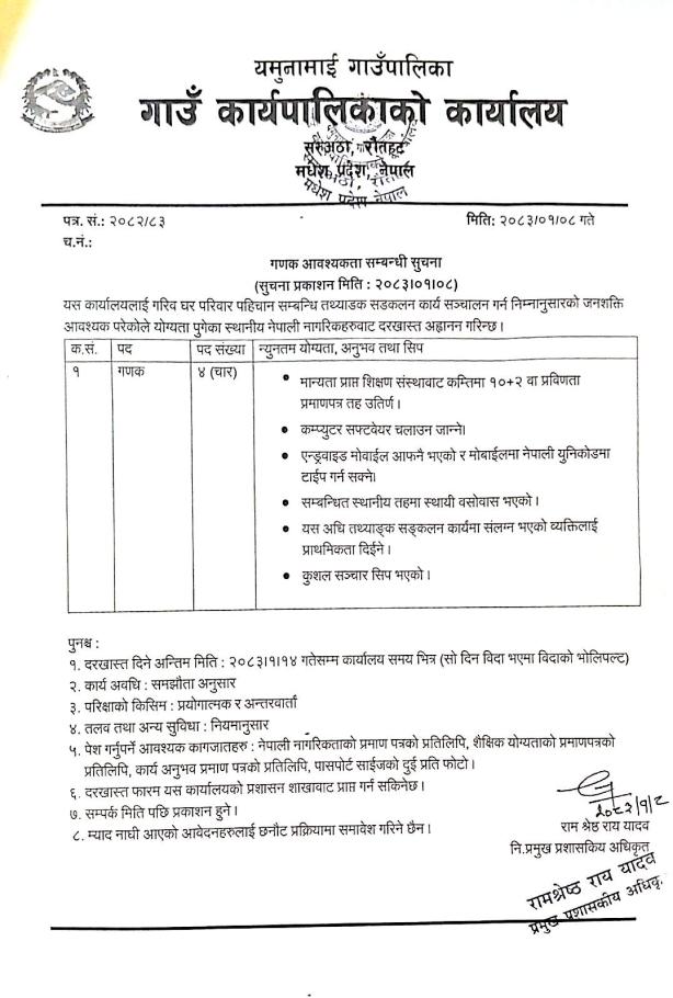 यमुनामाई गाउँपालिकाको विपद व्यवस्थापन कोष संचालन कार्यविधि २०८२